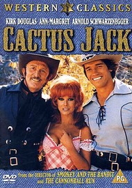 He's dressed in black from boots to hat and he's twirling double iron. His name is "Cactus Jack" Slater. Kirk Douglas stars as the ne'er-do-well highwayman in this screwball gunslinger comedy co-starring Arnold Schwarzenegger as Handsome Stranger and Ann-Margret as the lusty Miss Charming Jones. Charming's father Parody has sent her on a risky overland errand, providing crooked banker Avery Simpson with the perfect chance to double-cross Parody out of a silver fortune.